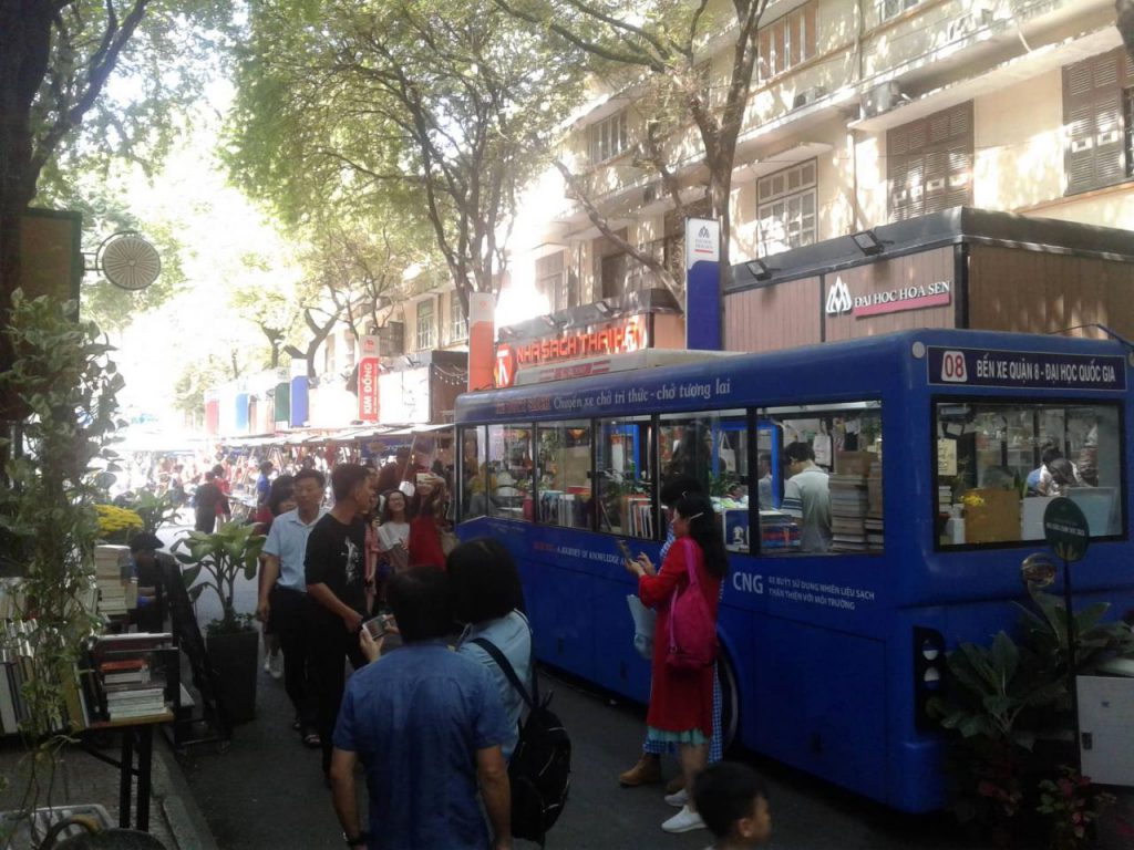 Không chỉ các gian hàng mở cửa phục vụ nhu cầu mua sách, tại xe buýt sách – Thư viên mini của Đường Sách, do nhóm tình nguyện viên của dự án Sách Chuyền Tay vận hành, tiếp đón hơn 500 lượt bạn đọc tham quan mỗi ngày. Trong đó có 60 lượt bạn đọc mượn sách mỗi ngày. Thể loại sách được mượn đọc trong dịp Tết tập trung văn học và các sách kỹ năng.